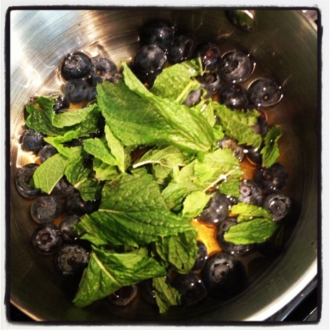 - In a small saucepan, bring blueberries, honey, mint and 1/4 cup water to a boil over medium-high heat. Stir until honey dissolves, about 3 minutes. Remove from heat and muddle blueberries and let stand for 20 minutes. Strain and place in refrigerator until chilled.